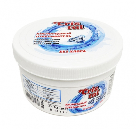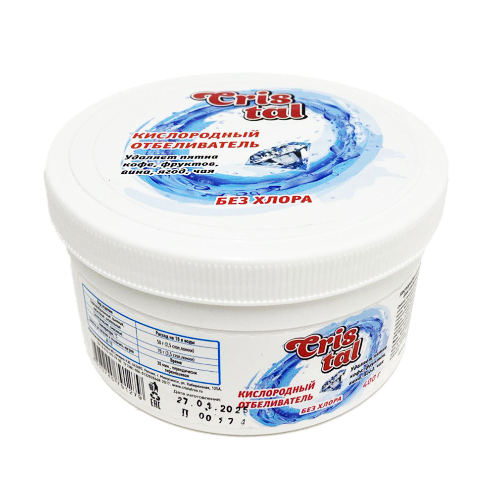 ΠΠΈΡΠ»ΠΎΡΠΎΠ΄Π½ΡΠΉ ΠΎΡΠ±Π΅Π»ΠΈΠ²Π°ΡΠ΅Π»Ρ CRISTAL β ΡΡΠΎ ΡΡΡΠ΅ΠΊΡΠΈΠ²Π½ΠΎΠ΅ ΠΈ Π±Π΅Π·ΠΎΠΏΠ°ΡΠ½ΠΎΠ΅ ΡΡΠ΅Π΄ΡΡΠ²ΠΎ Π΄Π»Ρ ΠΎΡΠ±Π΅Π»ΠΈΠ²Π°Π½ΠΈΡ ΠΈ ΡΠ΄Π°Π»Π΅Π½ΠΈΡ ΡΠ»ΠΎΠΆΠ½ΡΡ Π·Π°Π³ΡΡΠ·Π½Π΅Π½ΠΈΠΉ Ρ Π±Π΅Π»ΡΡ. ΠΡΠ½ΠΎΠ²Π½ΡΠΌ Π΄Π΅ΠΉΡΡΠ²ΡΡΡΠΈΠΌ Π²Π΅ΡΠ΅ΡΡΠ²ΠΎΠΌ ΡΠ²Π»ΡΠ΅ΡΡΡ Π°ΠΊΡΠΈΠ²Π½ΡΠΉ ΠΊΠΈΡΠ»ΠΎΡΠΎΠ΄, ΠΊΠΎΡΠΎΡΡΠΉ Π±Π΅ΡΠ΅ΠΆΠ½ΠΎ Π²ΠΎΠ·Π΄Π΅ΠΉΡΡΠ²ΡΠ΅Ρ Π½Π° ΡΠΊΠ°Π½ΠΈ, ΡΠΎΡ ΡΠ°Π½ΡΡ ΠΈΡ ΡΡΡΡΠΊΡΡΡΡ ΠΈ ΡΠ²Π΅Ρ. Π‘ΡΠ΅Π΄ΡΡΠ²ΠΎ ΠΏΠΎΠ΄Ρ ΠΎΠ΄ΠΈΡ Π΄Π»Ρ ΠΈΡΠΏΠΎΠ»ΡΠ·ΠΎΠ²Π°Π½ΠΈΡ ΠΊΠ°ΠΊ Π² ΡΡΠΈΡΠ°Π»ΡΠ½ΡΡ ΠΌΠ°ΡΠΈΠ½Π°Ρ , ΡΠ°ΠΊ ΠΈ Π΄Π»Ρ ΡΡΡΠ½ΠΎΠΉ ΡΡΠΈΡΠΊΠΈ.