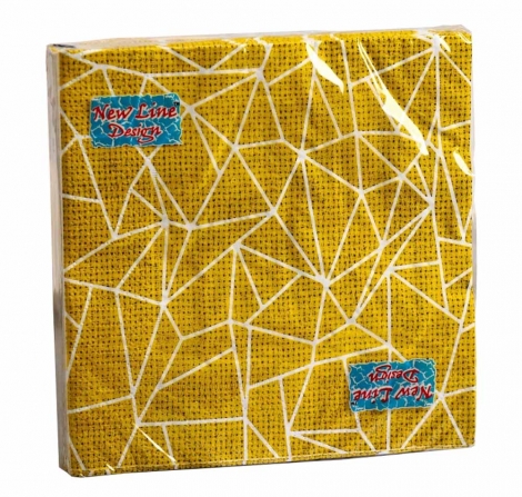 Количество ед. в упаковке 20 Конструкция, тип сложения 1/4 Плотность, количество слоев 2 слоя Тематика нейтральная Торговая марка NEW LINE (НЬЮ ЛАЙН) Цвет желтый с рисунком