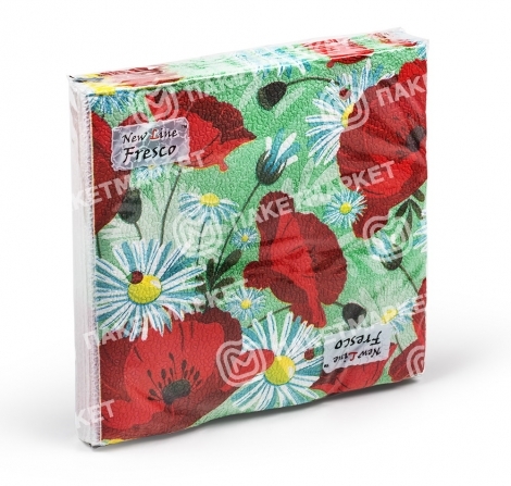 Салфетки бумажные двухслойные с ярким летним декором "Ромашки и маки". Сочные цветочные мотивы создают праздничное настроение.