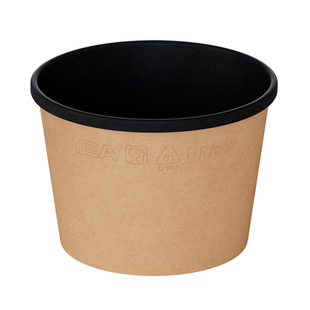 ΠΠ»Π΅Π³Π°Π½ΡΠ½ΡΠΉ ΠΊΡΡΠ³Π»ΡΠΉ Π±ΡΠΌΠ°ΠΆΠ½ΡΠΉ ΠΊΠΎΠ½ΡΠ΅ΠΉΠ½Π΅Ρ OneBowl Bottom ΠΎΠ±ΡΠ΅ΠΌΠΎΠΌ 380 ΠΌΠ» Π² ΡΠ΅ΡΠ½ΠΎΠΌ ΠΊΡΠ°ΡΡ-Π΄ΠΈΠ·Π°ΠΉΠ½Π΅. ΠΠ·Π³ΠΎΡΠΎΠ²Π»Π΅Π½ ΠΈΠ· Π²ΡΡΠΎΠΊΠΎΠΊΠ°ΡΠ΅ΡΡΠ²Π΅Π½Π½ΠΎΠ³ΠΎ ΠΏΠΈΡΠ΅Π²ΠΎΠ³ΠΎ ΠΊΡΠ°ΡΡ-ΠΊΠ°ΡΡΠΎΠ½Π° Ρ Π²Π»Π°Π³ΠΎΡΡΠΎΠΉΠΊΠΈΠΌ Π²Π½ΡΡΡΠ΅Π½Π½ΠΈΠΌ ΠΏΠΎΠΊΡΡΡΠΈΠ΅ΠΌ. ΠΠΌΠ΅Π΅Ρ ΠΏΡΠΎΡΠ½ΠΎΠ΅ Π΄Π½ΠΎ ΠΈ ΡΡΡΠΎΠΉΡΠΈΠ²ΡΡ ΠΊΠΎΠ½ΡΡΡΡΠΊΡΠΈΡ, ΡΠΏΠ΅ΡΠΈΠ°Π»ΡΠ½ΠΎ ΡΠ°Π·ΡΠ°Π±ΠΎΡΠ°Π½ Π΄Π»Ρ Π³ΠΎΡΡΡΠΈΡ Π±Π»ΡΠ΄ ΠΈ ΡΡΠΏΠΎΠ².