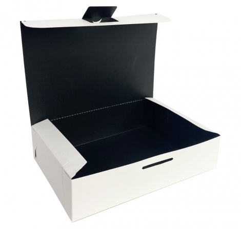 Π‘ΡΠΈΠ»ΡΠ½Π°Ρ Π±ΡΠΌΠ°ΠΆΠ½Π°Ρ ΠΊΠΎΡΠΎΠ±ΠΊΠ° Π΄Π»Ρ ΡΠ°ΡΡ-ΡΡΠ΄Π° Ρ ΡΠ΅ΡΠ½ΠΎΠΉ Π»Π°ΠΌΠΈΠ½Π°ΡΠΈΠ΅ΠΉ. ΠΠΌΠ΅Π΅Ρ ΡΠΊΠ»Π°Π΄Π½ΡΡ ΠΊΠΎΠ½ΡΡΡΡΠΊΡΠΈΡ ΠΈ ΡΠ²Π΅Π»ΠΈΡΠ΅Π½Π½ΡΠΉ ΠΎΠ±ΡΠ΅ΠΌ, ΠΈΠ΄Π΅Π°Π»ΡΠ½ΠΎ ΠΏΠΎΠ΄Ρ ΠΎΠ΄ΠΈΡ Π΄Π»Ρ ΠΏΠΎΠ΄Π°ΡΠΈ Π±ΡΡΠ³Π΅ΡΠΎΠ², ΠΊΠ°ΡΡΠΎΡΠ΅Π»Ρ ΡΡΠΈ ΠΈ Π΄ΡΡΠ³ΠΈΡ Π±Π»ΡΠ΄ Π±ΡΡΡΡΠΎΠ³ΠΎ ΠΏΠΈΡΠ°Π½ΠΈΡ.