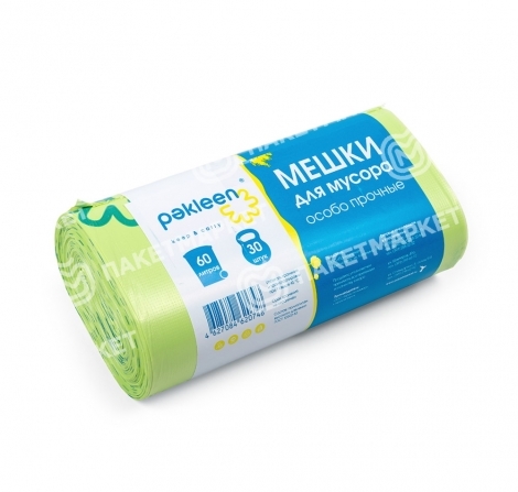 Купить пакеты для мусора ПНД 60 литров (30шт/рул) 60x80 см 15 мкм зеленые PAKLEEN в Красноярске можно в интернет-магазине ПакетМаркет. Мы предлагаем качественную продукцию по выгодным ценам с доставкой по городу. Закажите прямо сейчас и обеспечьте удобство утилизации отходов!