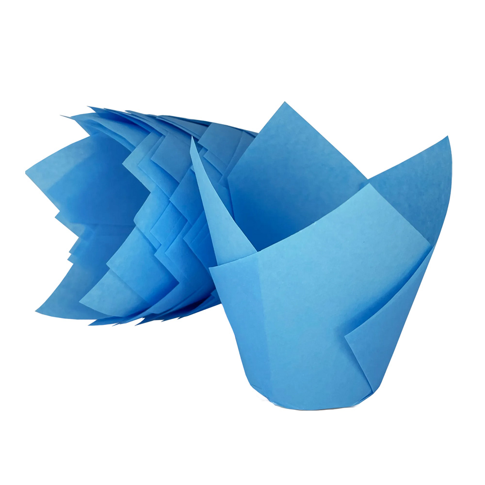 Элегантные голубые формы для кексов в виде тюльпана. Профессиональное решение для эффектной подачи выпечки в кафе, кондитерских и дома.